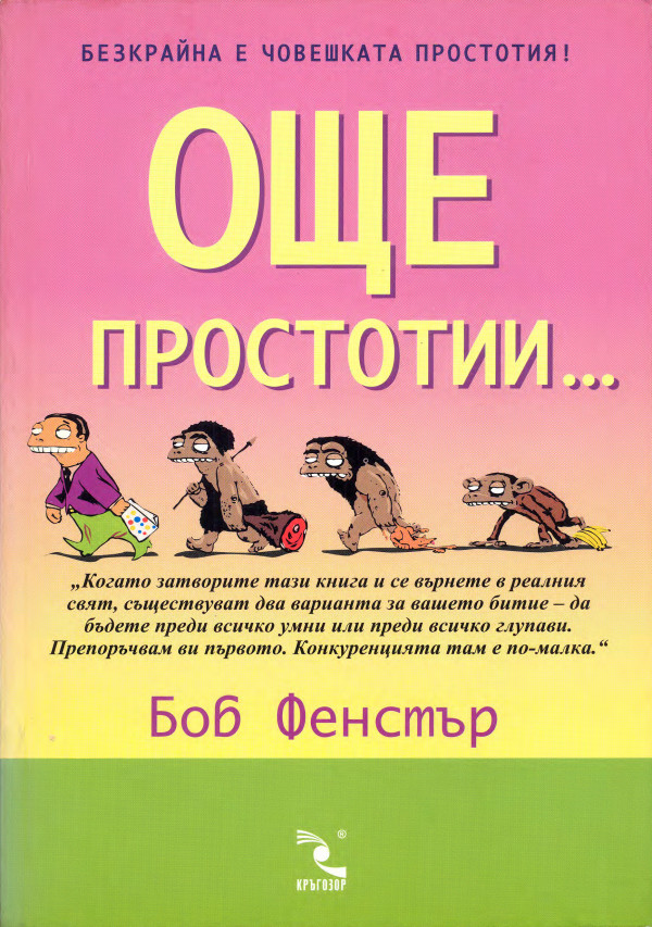 В свят, жужащ от идиоти, простотията е индустрия, която набира все повече сили. За справянето с нея се налага задълбочена стратегия — стратегия, отлично изградена на основата на смеха. Така че, да се посмеем заедно с тази скандална колекция от глупостите, натворени от хората във всяка сфера на човешкия живот. Боб Фенстър е преровил старателно света на интелектуално обременените в търсене на образци на глупостта, с които да ни забавлява — и определено е ударил джакпота с книгата си „Още простотии…“.
