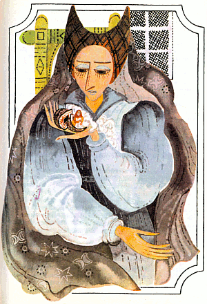 И тогава тя пак почувствувала, че сърцето й ще се пръсне от мъка и счупила големия лешник, защото той бил втория по големина. И от него изскочила странна, съвсем малка женица, която така бързо предяла, както никой досега.