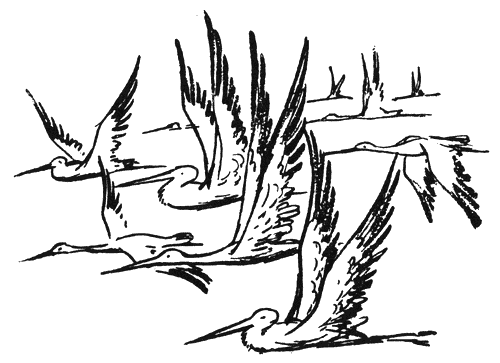 Митко скочи, сложи ръка пред очите и се загледа. Ясно видя големи бели птици да размахват крила. Ето че орлякът се сниши над самите ниви, разточи се в дълга бяла верига и една след друга големите птици накацаха в нивите.