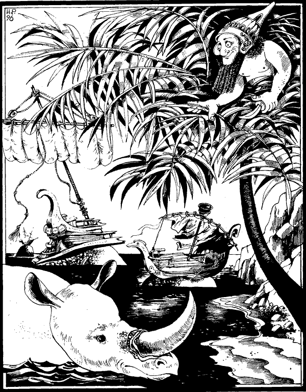 Черното във водата близо до брега не е останка от кораб, а нещо съвсем друго. Това е Строркс, Носорогът, който се къпе без кожата си. Той и без кожа си е толкова черен, колкото със. А за готварската печка, на твое място, не бих питал много.