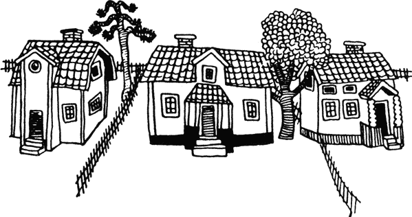 Живеем в една къща, която се казва Средната. Така я наричат, защото е между две други къщи. На тях им викат Северната и Южната. Трите къщи стоят в една редица. Ей тъй: