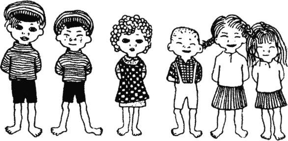 Ласе и Бусе са моите братя. Ласе е на девет години, а Бусе — на осем. Ласе е страшно силен и може да тича много по-бързо от мен. Ама аз мога да тичам бързо колкото Бусе. Понякога Ласе и Бусе не искат да играя с тях и тогава Ласе ме държи, а Бусе хуква напред, докато вземе преднина. После Ласе ме пуска и побягва, и като нищо ме оставя далеч назад. Нямам си сестра. Много ми е мъчно. Момчетата вдигат такава врява!