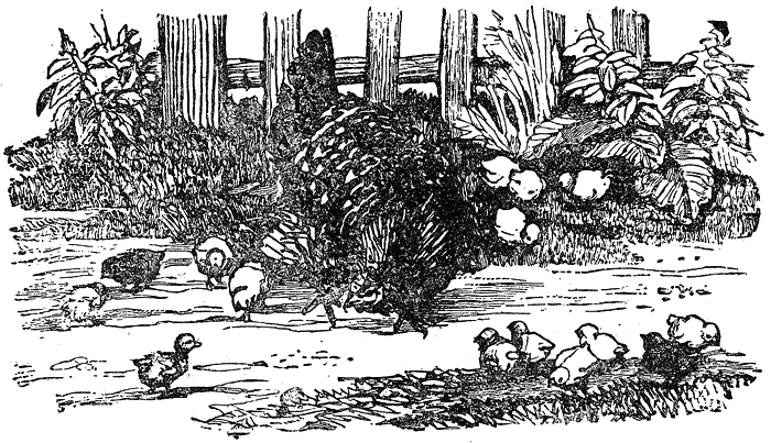 Най-късно от всички се излюпи пиленцето от зеленикавото яйчице. И какво чудно излезе то: кръгличко, пухкаво, жълто, с късички крачета, с широка човчица. „Особено излезе това мое пиленце — мисли си кокошката, — и кълве, и ходи не по нашенски; човчицата широка, краката къси, такова едно тромаво, току се заваля от краче на краче.“ Зачуди се кокошката на своето пиленце, но каквото и да е, нали е нейно чедо. И си го обича, и си го пази кокошката както другите и щом зърне отдалеч ястреб, накокошинва се, широко разперва кръглите си криле и крие под себе си своите пиленца, без да гледа кое какви крака има.