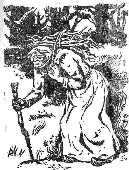 По пътя се задала една стара жена, понесла на гръб наръч дърва. Едри капки пот се стичали по набръчканото й лице, а краката й треперели от умора.