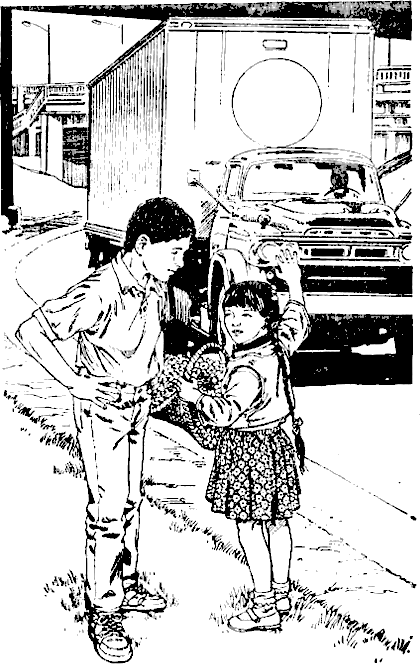 Училищният автобус минава с грохот по улицата. Той наближава спирката на ъгъла на твоя дом и стоповете светват. Скачаш от автобуса и тръгваш из квартала.