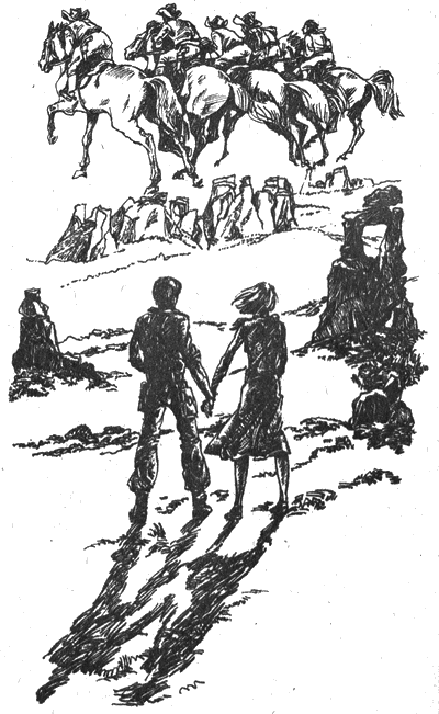 — Видели са я на разсъмване, отишла в пустинята — отговори той. — Аз отивам за кон. — Той не забави крачките си. — А ти сядай в твоя дилижанс и отивай там самичък. И ако не я намериш, докато дойдем, синко, то по-добре не се връщай назад.
