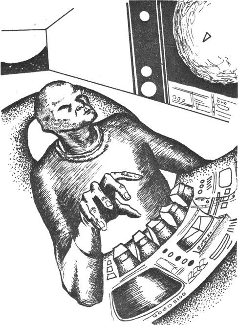 След това той провери хиперпространствения двигател, най-ценното на двигателната система. Тъкмо това отличаваше неговия кораб от автоматически управляемите ракети, летящи със скорост близка до скоростта на светлината. Той беше на път вече четири години, предстояха му още две. Тези шест години на борда на кораба съответствуваха само на осем години на родната му планета. Две години разлика във времето се дължеше на късите отсечки, които той трябваше да преодолее с гравитационната машина. В хиперпространството корабът летеше със скорост, надхвърляща многократно скоростта на светлината, така че при завръщането си той можеше да срещне своите връстници малко по-остарели от него.