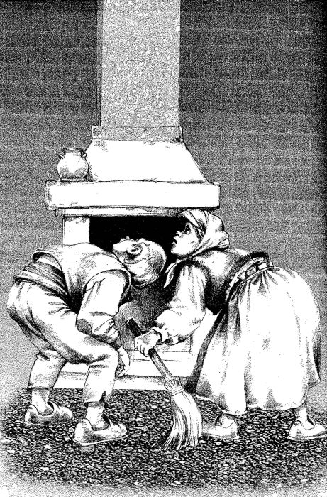 — Хайде! — извикал старецът и се спуснал през комина по веригата.