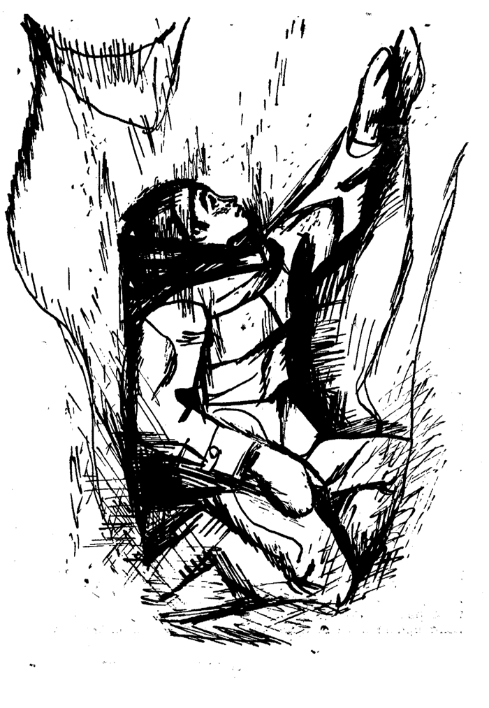 Николайчо попадна между Светла и Михал, който вървеше в десния край на разтегнатата редица. Те не се виждаха, нито пък можеха да се чуят, ако речеха да извикат. Тръпки от страх пролазиха по снагата на Николайчо. Той се придвижваше напред с ръце и крака, сякаш се бори с триста дяволи, но вече чувствуваше, че няма повече сили. Пот се стичаше по ллцето му, а устните му се бяха напукали от вятъра и отдавна кървяха. Искаше му се да поспре за малко, но се страхуваше да не се отпусне, да не приседне в снега и да заспи. Вървеше напосоки в кипящата тъма, а снегът вреше край него и съскаше в надпревара с вятъра.