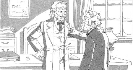 — Чуй ме добре, приятелю! Това няма да стане! — извика Скрудж. — Така повече не бива, затова ще ти повиша заплатата!