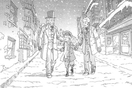 — Весела Коледа, Боб! — поздрави го Скрудж с грейнала усмивка. — Засили огъня, а после двамата с теб ще седнем с кана горещо коледно вино с плодове и ще поговорим за заплатата ти и за това как мога да помогна на семейството ти.