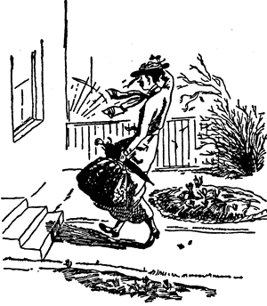 — Ето го! — извика внезапно Майкъл и посочи някаква неясна фигура, която се блъсна с трясък в градинската врата.