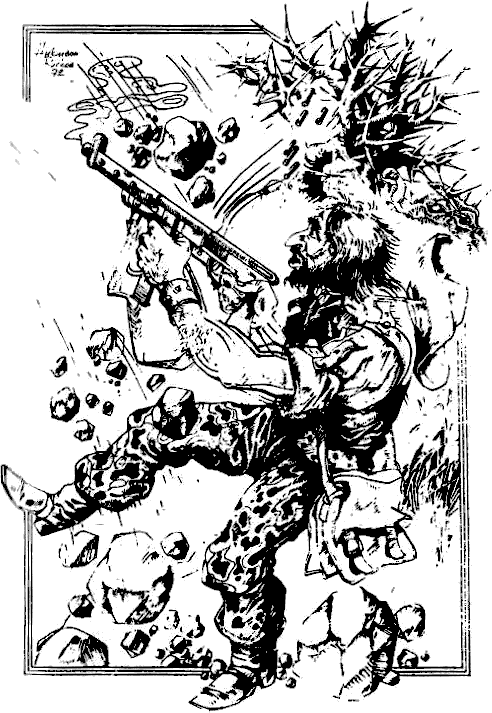 Пред теб лежи Гибона. Оглеждаш го — сред скалпа зее кървава бразда, но черепът изглежда здрав. Естествено, липсата на мозък винаги се е компенсирала с дебела глава — това е едва ли не природен закон. Отскачаш до площадката, донасяш парчетата от въжето и връзваш бандита така, че после и сам не би могъл да го развържеш. След това откъсваш парцал от ризата и го натъпкваш в устата му.