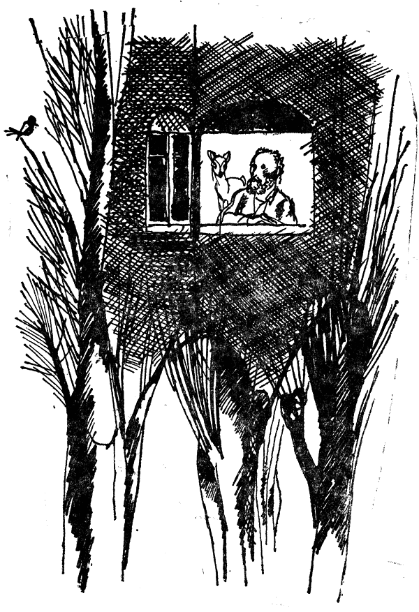 Когато лампата светваше с електрическа светлина, ябълките ставаха по-червени и блестяха, а сивият зеленикав мъх на сърничката ставаше златен. Тогава сърничката оперваше уши, извиваше грациозно шията си и гледаше към потъмнелите прозорци. Тънките й крачета потреперваха от нетърпение — всеки миг тя бе готова да подскочи от бюфета и да изчезне навън. Кожата й с позлатен мъх на шията и на коремчето също потреперваше, а белите огледалца отстрани, до опашката й, ставаха по-големи.